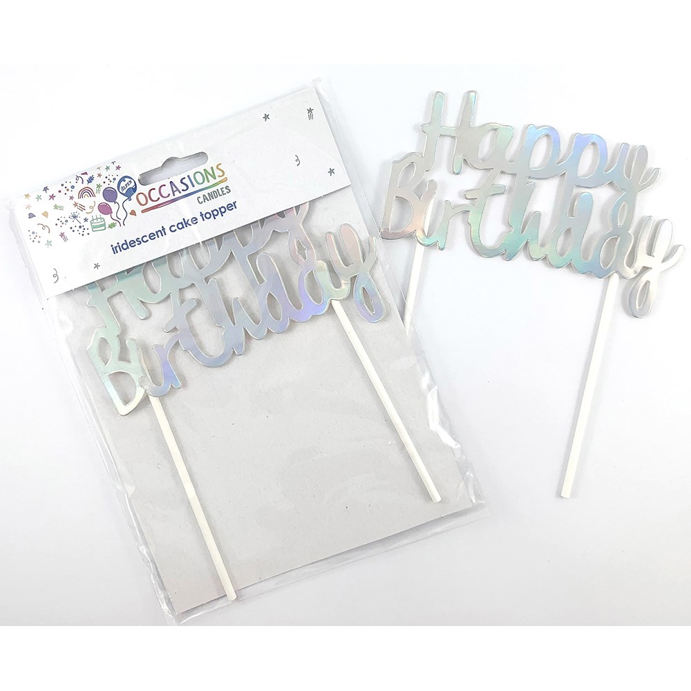 Alpen Occasions Happy Birthday Cake Topper 100W x 135mmH Metallic Iridescent