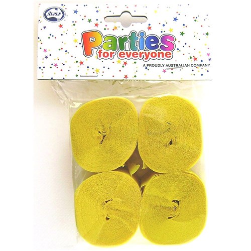 Alpen Parties For Everyone Crepe Streamers 35mm x 13m Gold Pack Of 4