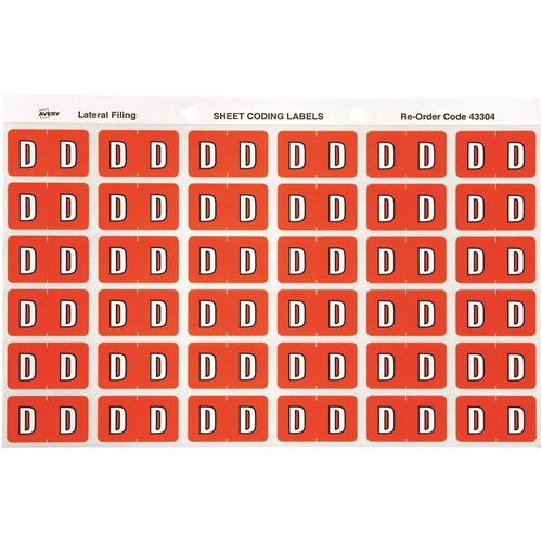 Avery Alphabet Coding Label D Side Tab 25x38mm Dark Orange Pack Of 180