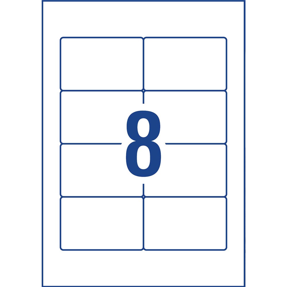 • Size: 86.5x55.5mm 120 labels, 15 sheets. 8 labels per sheet (8UP)