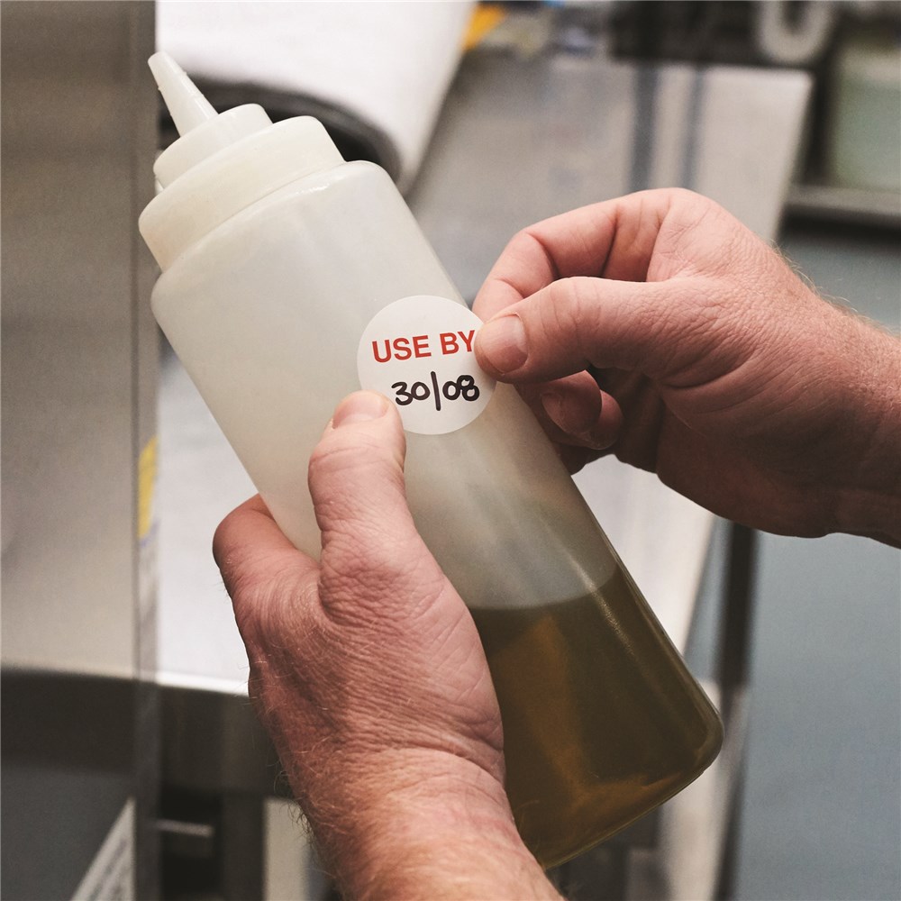 Visually identifies discard date of prepared food. Space to write the date on the label. Ideal for commercial refrigeration and food storage applications. Temperature -5 to +65C. Removable adhesive adheres to a variety of surfaces and removes easily.