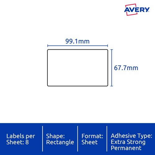 • Size: 99.1x67.7mm 80 labels, 10 sheets. 8 labels per sheet (8UP)