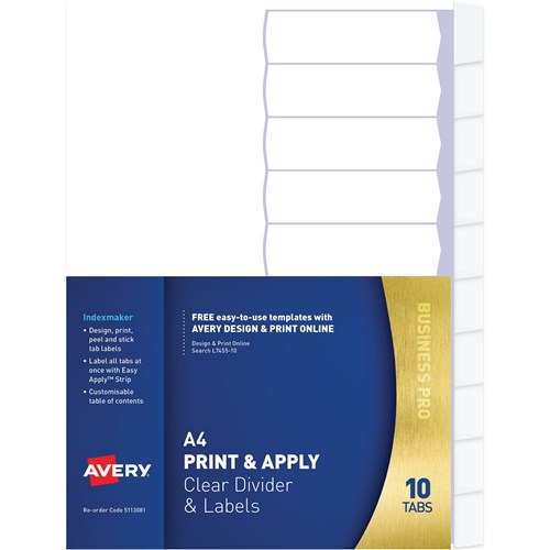 Avery L7455-5 Print & Apply Label Dividers A4 5 Tabs Clear