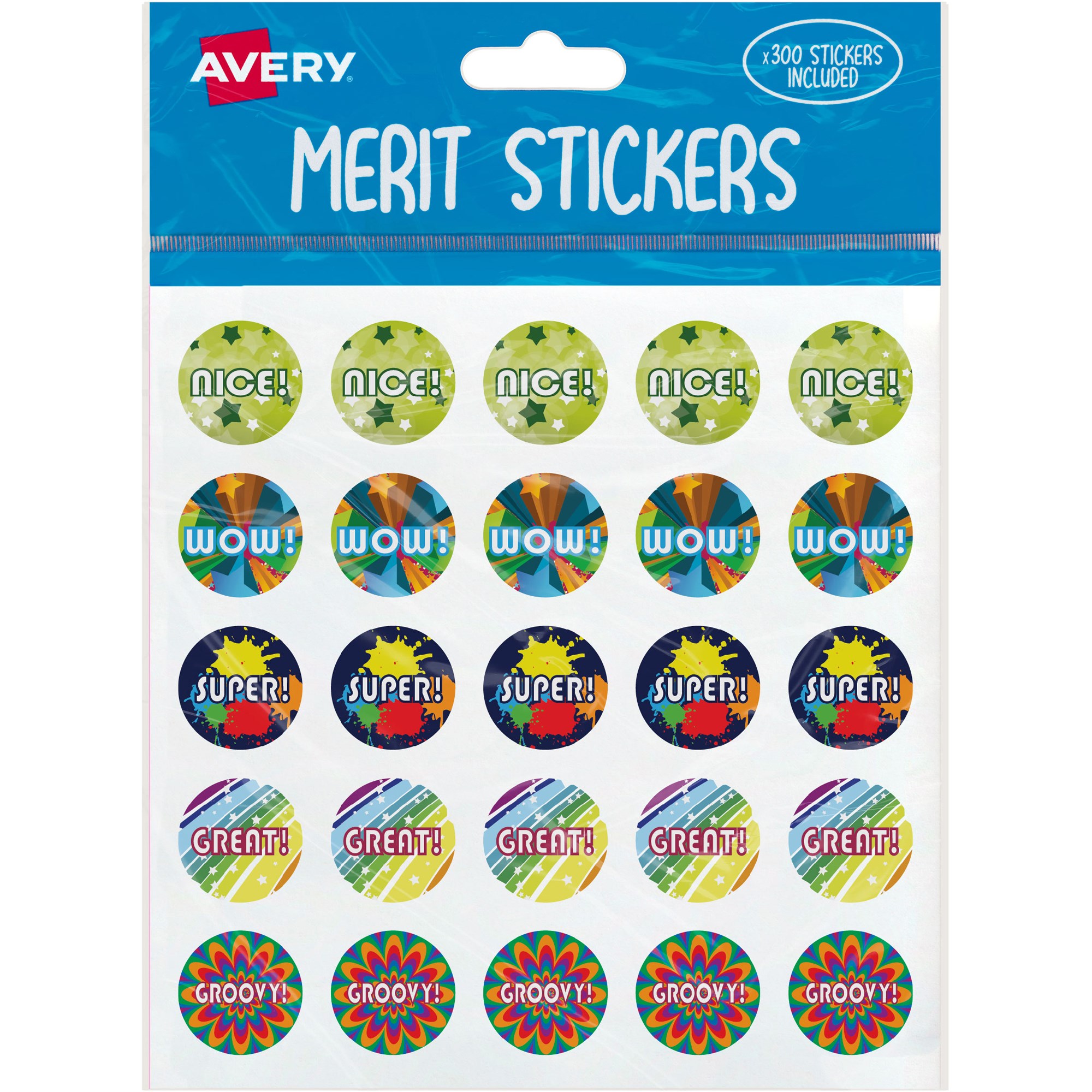 Avery Merit Stickers Caption 3 Round 22mm 5 Designs Assorted Colours 300 Stickers