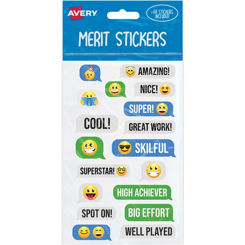 Avery Merit Stickers Messaging Emoji 13 Designs Assorted Colours 68 Stickers