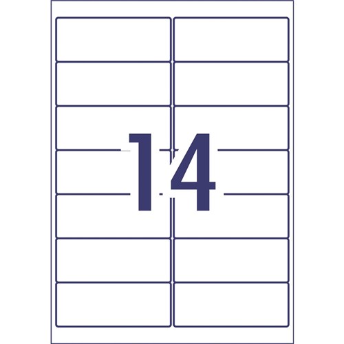 • Size: 99.1x38.1mm 140 labels, 10 sheets. 14 labels per sheet (14UP).