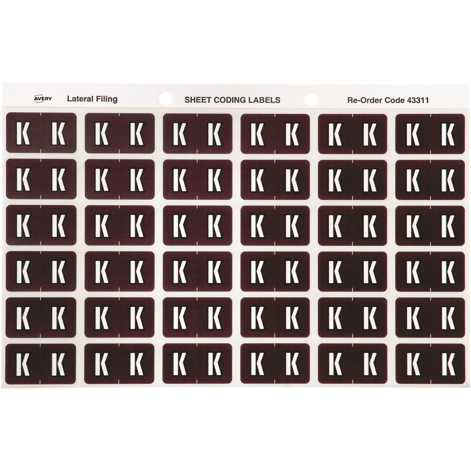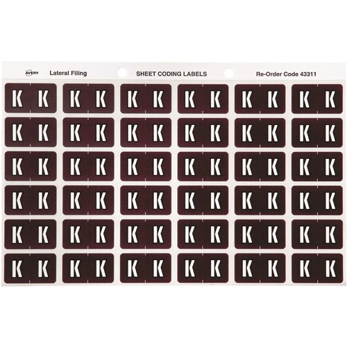 Avery Alphabet Coding Label K Side Tab 25x38mm Brown Pack Of 180