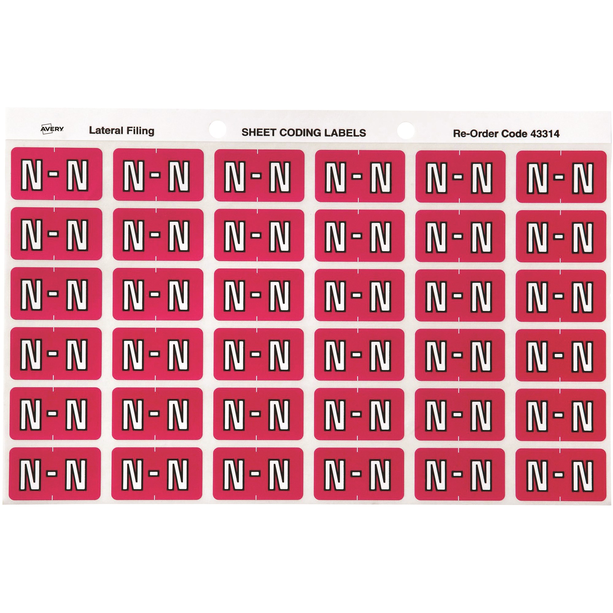 Avery Alphabet Coding Label N Side Tab 25x38mm Magenta Pack Of 180