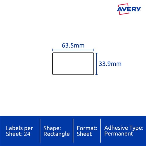 • Size: 63.5x33.9mm 240 labels, 10 sheets. 24 labels per sheet (24UP)