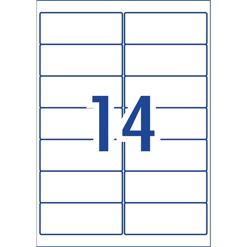 • Size: 99.1x38.1mm 140 labels, 10 sheets. 14 labels per sheet (14UP)