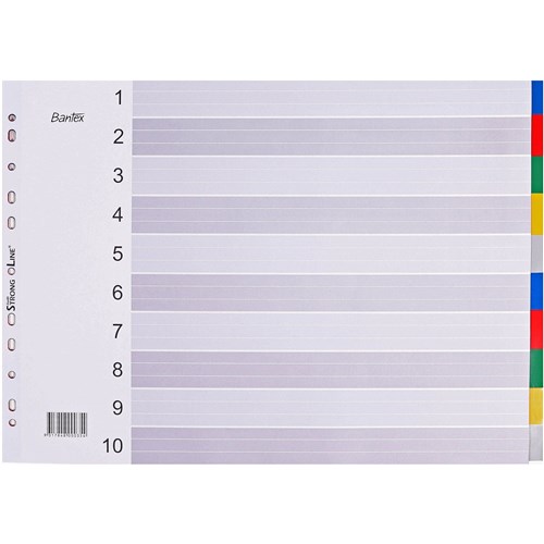 The Bantex A3 Dividers are perfect for filing away those larger documents. These dividers are made from strong polypropylene material to ensure their durability. Includes 5 or 10 coloured tabs for easy filing. Available in landscape or portrait formats.