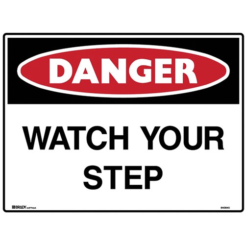 Brady Danger Sign Watch Your Step 600W x 450mmH Polypropylene White/Red/Black
