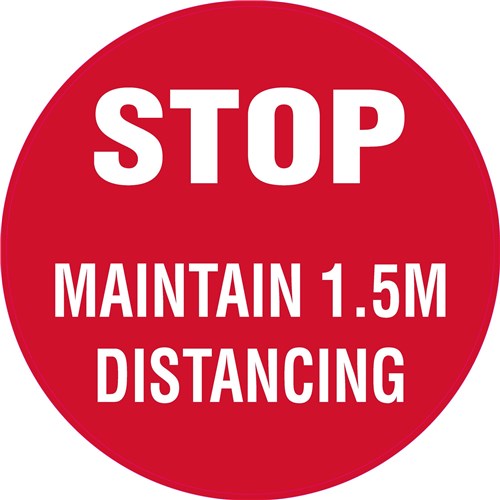 Wording: Stop Maintain 1.5M Distancing. Self-adhesive walk-on floor sign designed to bond to many different surfaces. Clear textured overlaminate protects warning message. Suitable for heavy traffic areas or wall mounting applications where graffiti or heavy wash downs are a problem. Easy to remove, just peel off the marker and wipe down the surface area. Suitable for internal use. Size: 440mm diameter.
