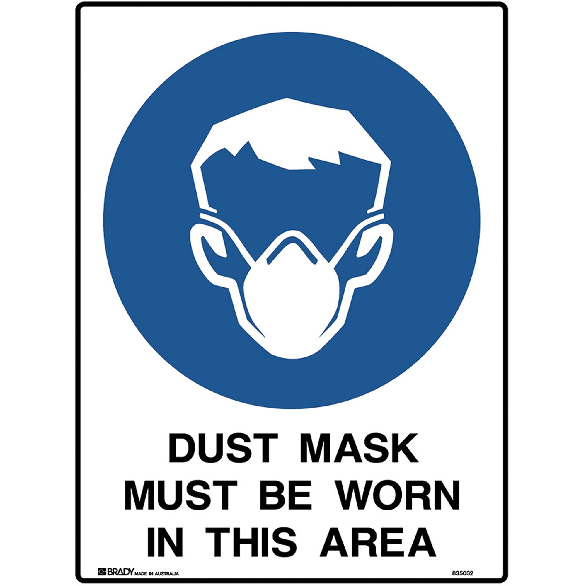 Brady Mandatory Sign Dust Mask Must Be Worn 450W x 600mmH Polypropylene White/Blue