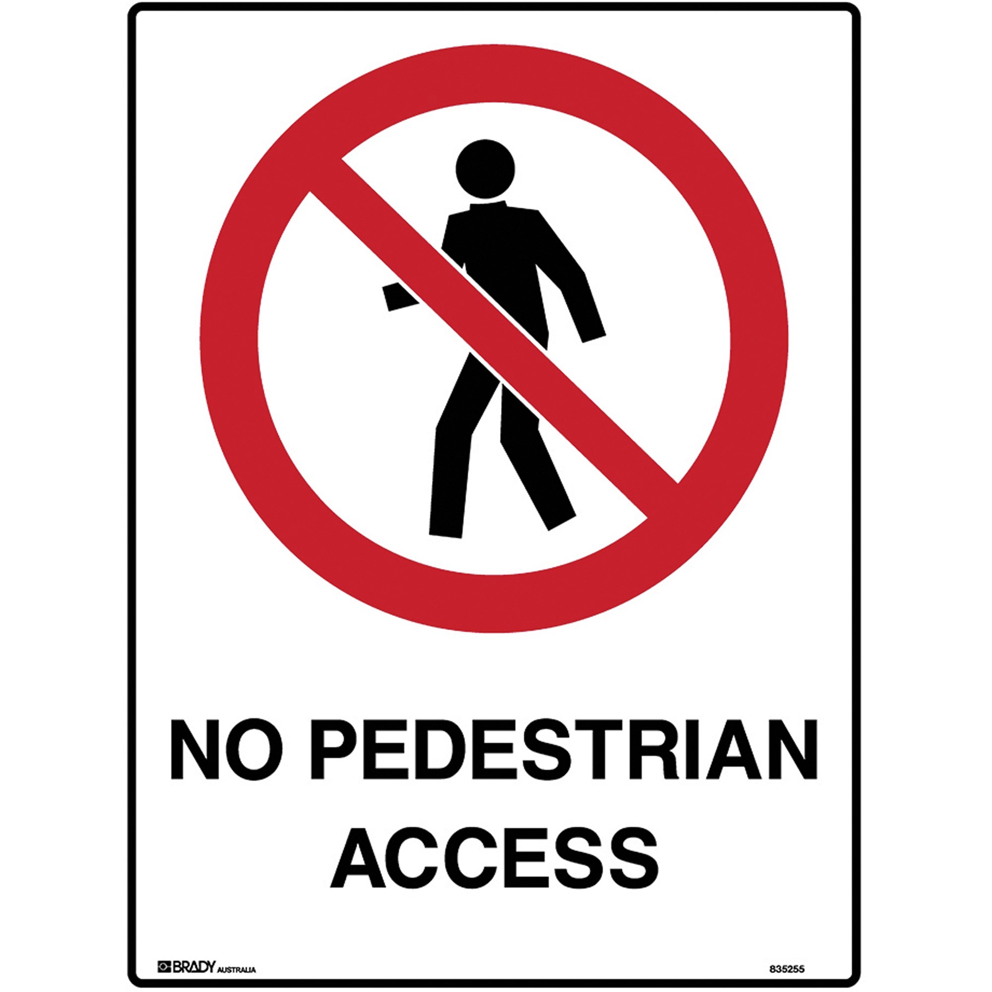 Brady Prohibition Sign No Pedestrian Access 450 x 600mmH Polypropylene White/Red/Black