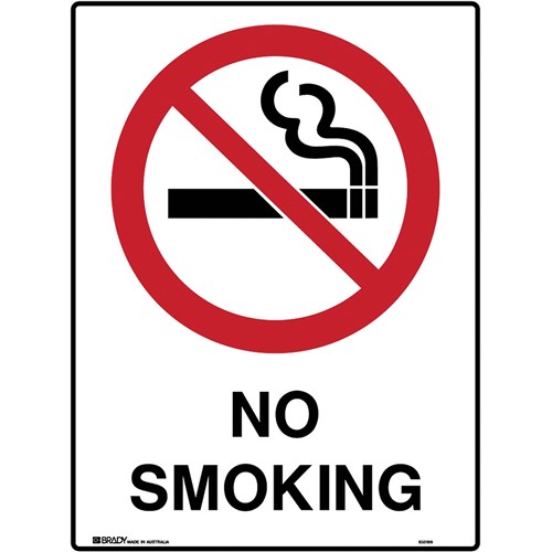 Brady Prohibition Sign No Smoking 450W x 600mmH Metal White/Red/Black