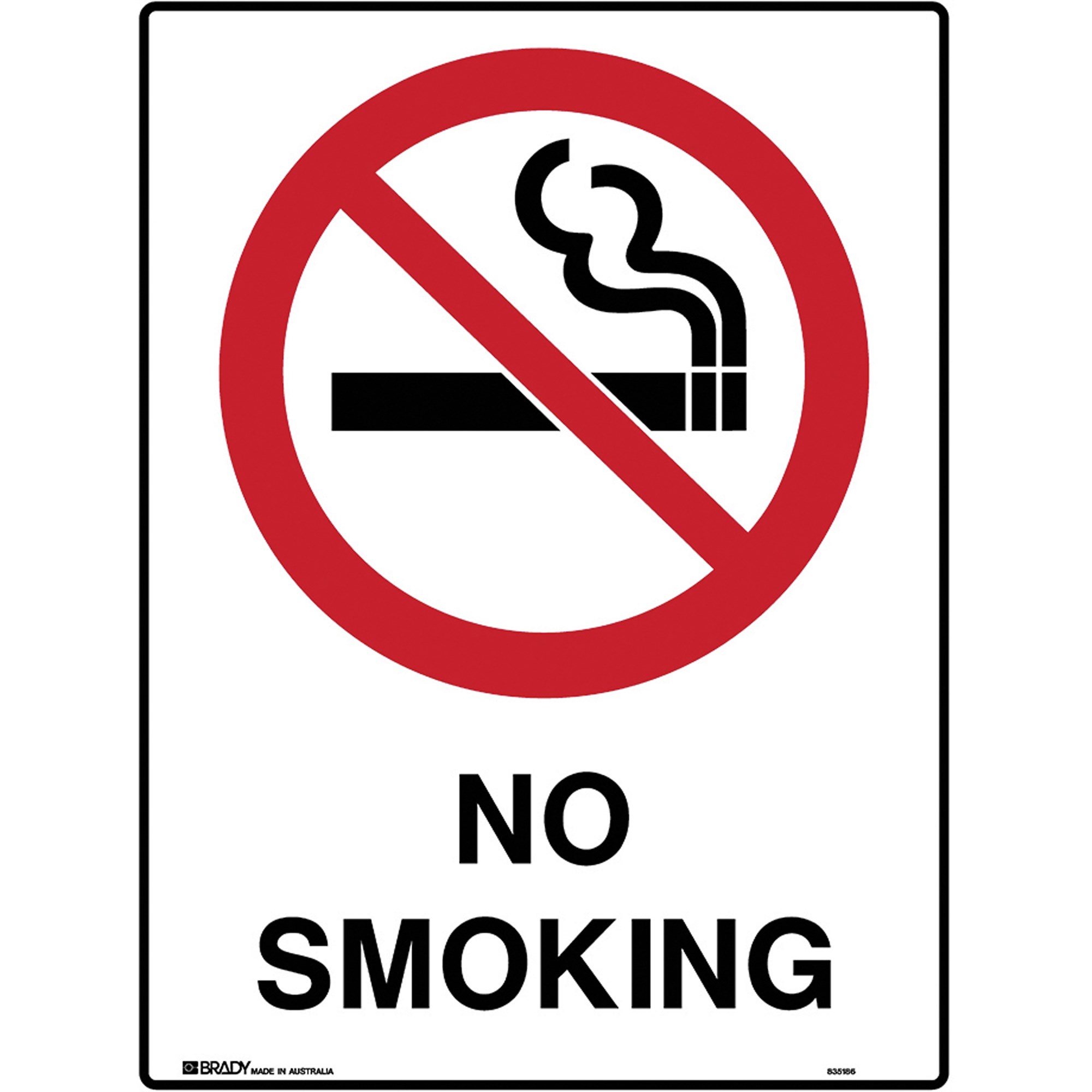 Brady Prohibition Sign No Smoking 450W x 600mmH Polypropylene White/Red/Black