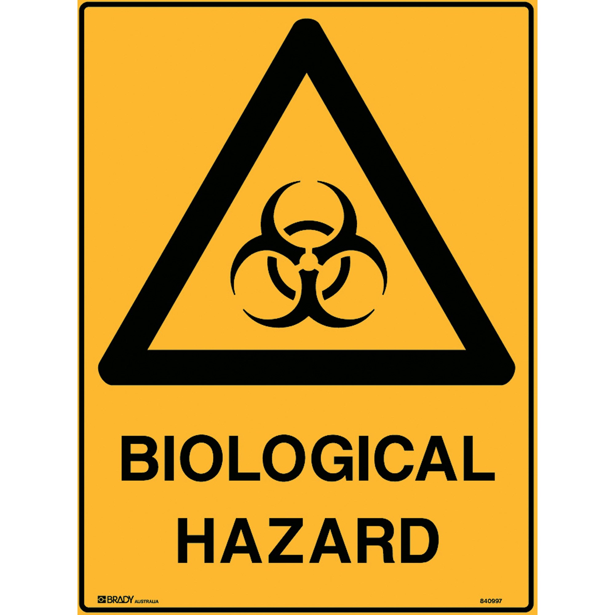 Brady Warning Sign Biological Hazard 450W x 600mmH Polypropylene Yellow And Black