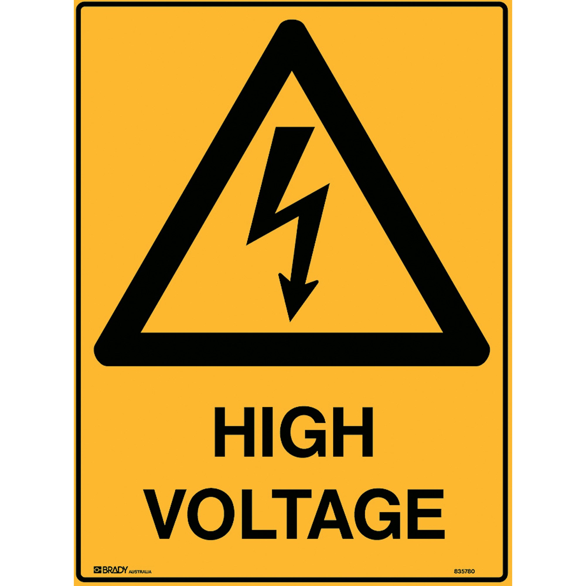 Brady Warning Sign High Voltage 450W x 600mmH Polypropylene Yellow And Black