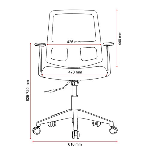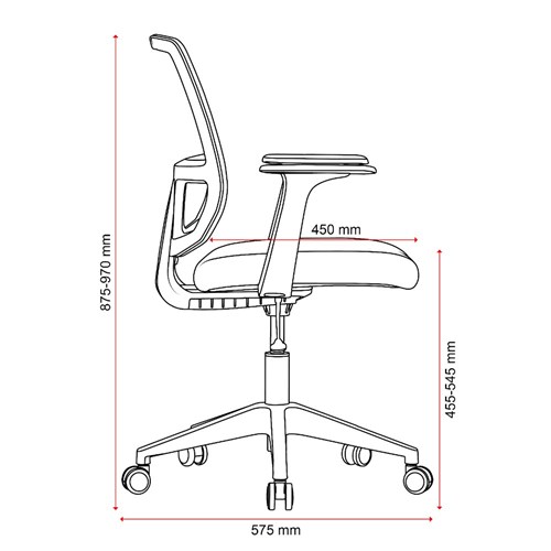 Chair Capacity: 100kg. Composition: Mesh back, upholstered seat and strong nylon 5 star base with 50mm nylon castors. Fixed armrests for extra ergonomic support. Seat Width: 470mm. Seat Depth: 450mm. Back Height: 500mm. Indicative Seating Time: 4 - 6 Hours. Meets ANSI/BIFMA X5.1-2017 General-Purpose Office Chairs. 2 Year Manufacturer's Warranty. Delivery, installation and assembly charges may apply to furniture. Please enquire to confirm.