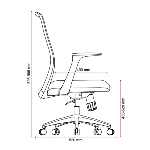 Fixed PP armrests. Composition: Mesh back, 30 density cut foam upholstered seat and strong nylon 5 star base. Chair Capacity: 120kg. Seat Depth: 490mm. Seat Width: 500mm. Back Height: 600mm. Indicative Seating Time: 6 - 8 Hours. Greenguard and ANSI/BIFMA X5.1-2017 general purpose Office Chairs certified. Gas lift seat height and body weight tension adjustment. 6 Year Manufacturer's Warranty. Delivery, installation and assembly charges may apply to furniture. Please enquire to confirm.