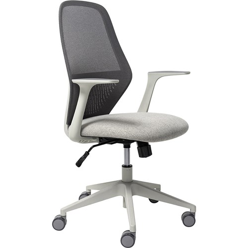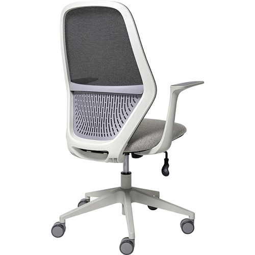 Chair Capacity: 120kg. Composition: Breathable mesh back and fabric upholstered seat. Overall dimensions: 630W x 575D x 970Hmm Indicative Seated Hours (per day): 6-8 hours. 5 Year Manufacturer's Warranty. Delivery, installation and assembly charges may apply to furniture. Please enquire to confirm.
