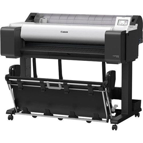 Stand Included. Print only. Printing resolution: 2400 x 1200 dpi. Media thickness up to 0.8mm. Connectivity: LAN, Wi-Fi, USB, Mobile. Dimensions with stand basket opened: 1285W x 885D x 1060mmH. 4.3'' LCD panel on printer. Ink Type: Pigment ink. Print Colour: 5 colour. Consumables: PFI-120 C/Y/BK/MBK, PFI-121 M, PFI-320 C/Y/BK/MBK, PFI-321 M. Operations Systems: Windows 11, Windows 10, Windows 8.1, Windows 7, Windows server 2022, Windows server 2019, Windows server 2016, Windows server 2012 R2, Windows server 2012, Windows server 2008 R2, macOS Catalina 10.15.7, macOS Ventura 13. Suitable for plans, point of sale, posters and signs in A1 and larger sizes. Supported paper size up to 36''. 2 Year Manufacturer's Warranty.