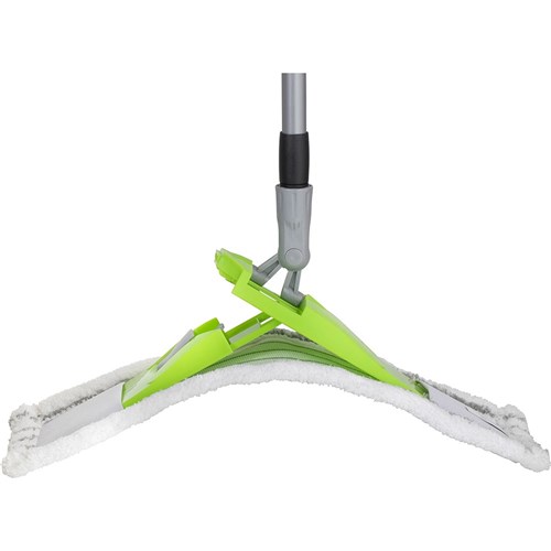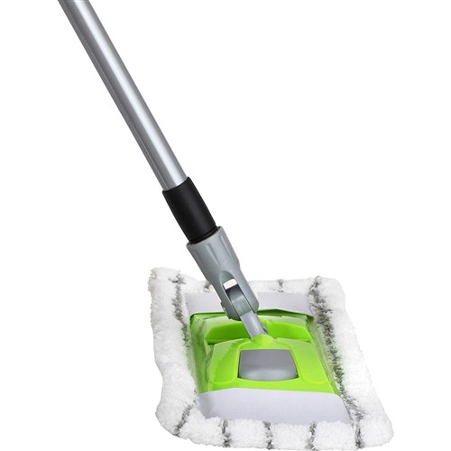 Soft microfibre mop head ideal for wet and dry use. Easy to remove mop head. Flat mop head for hard to reach areas. Telescopic handle that extends to 120cm.