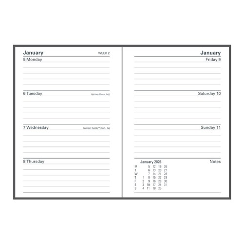 • Smartly bound in durable covers with a ribbon marker, these Collins diaries have Australian and International holidays printed throughout and contain 32 pages of useful information.