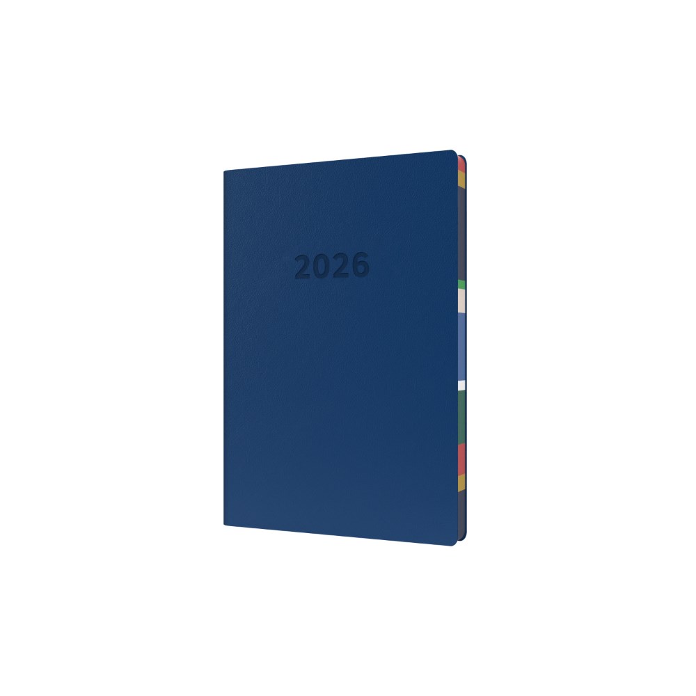 Soft leather look cover. Ribbon marker, lay flat opening and expandable back pocket. 3 year calendars. Monthly planner. Monthly goal and expenses tracker. Health tips. Apparel sizes. International holidays. Travel Wishlist and time zone map. Note pages. Size: 210 x 148mm. PEFC.