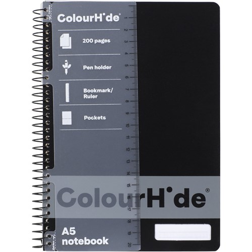 ColourHide Spiral Notebook A5 Side Bound 200 Page Black