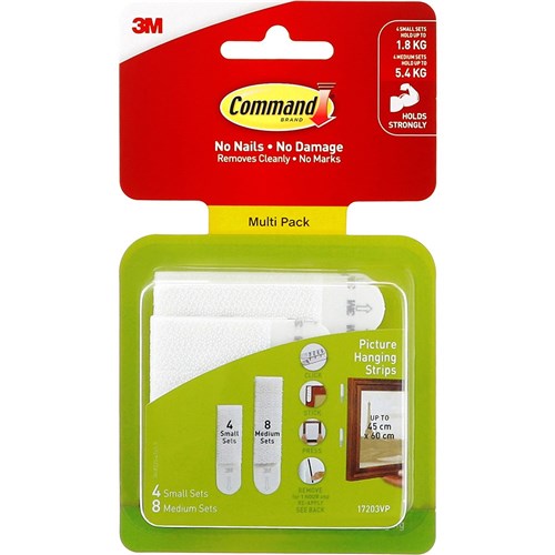 Holds strongly. Removes cleanly without surface damage. Commandâ„¢ Picture Hanging Strips are ideal for hanging pictures. Commandâ„¢ white & clear hooks are ideal for hanging a range of items including keys, calendars, utensils, decorations and more.