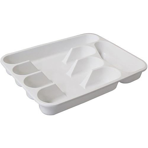 This tray can be used in the kitchen, office or caravan and is multipurpose to tidy stationery or cutlery. 5 compartments. Heavy duty. Easy to clean. Dimensions: 330L x 255W x 45mmH.