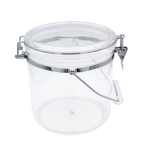 • Durable and versatile airtight canisters made from strong, clear acrylic material with chrome clip for sealing.