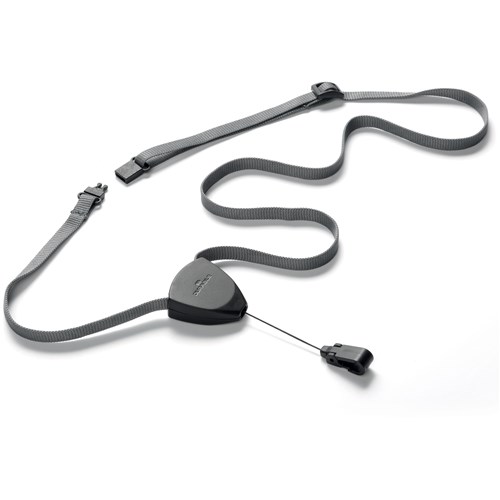 • The length of the grey, silky soft textile lanyard is adjustable from 240 mm to 500 mm