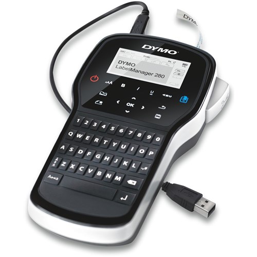 Print on D1 Label Tape & D1 Durable tapes which are available in a variety of colours of sizes 6mm, 9mm, & 12mm. Create labels on the go with a handheld printer, powered by a long-lasting rechargeable battery. Included cable lets you access fonts, graphics, and barcodes loaded to your PC and Mac. Quickly type text on the familiar computer-style QWERTY keyboard, edit with one-touch fast-formatting keys and print perfect, professional labels every time. Choose from 20+ ways to format text and 200+ symbols and clip art allows for customisation. Includes LabelManagerâ„¢ 280 Label Maker, rechargeable battery pack, USB cable and D1 starter label cassette, black on white 12mm x 3m. 2 Year Manufacturer's Warranty.