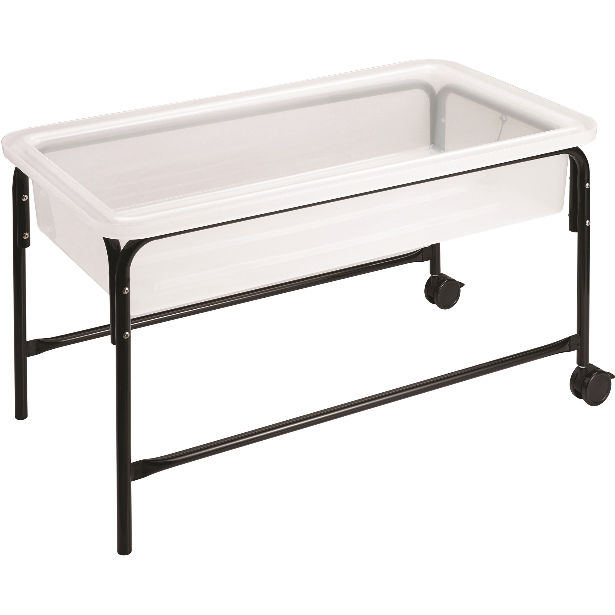 This strong and versatile plastic tray features a water release plug in the bottom for easy release. Includes a strong tubular frame fitted with two lockable casters for easy movement. The steel frame is designed to hold the Sand and Water Play tray. Translucent, 580mm high, the tray measures 1100x605x215mm. The set includes 1 tray with 580mm high stand.