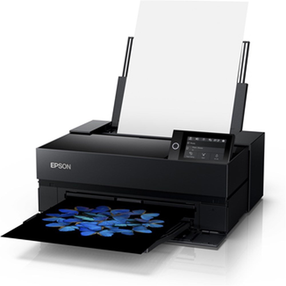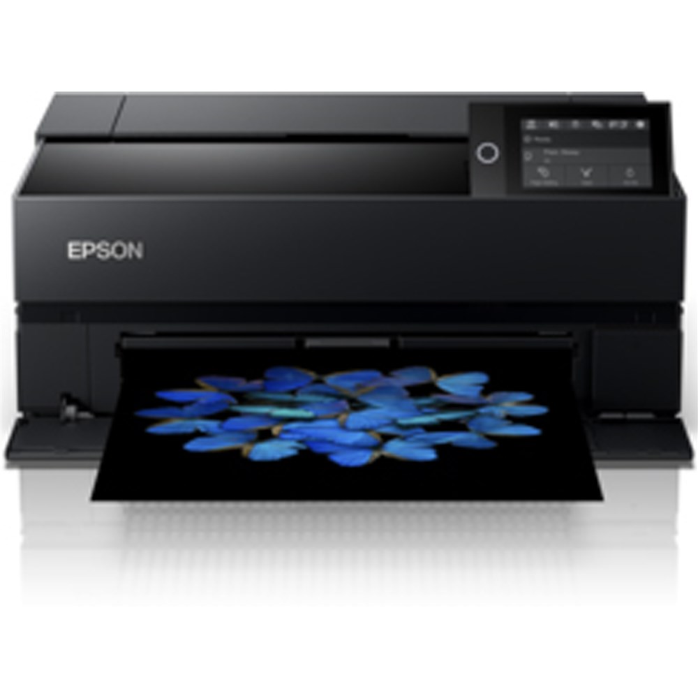 Print speed: A4 2 minutes, A3+ 3.28 minutes. Borderless 10 x 15cm 48 seconds. A3 inkjet printer that delivers even higher performance exhibition-quality prints with new and professional features, all achieved within a space-saving A4 footprint. Delivering an extended colour gamut producing vibrant and rich prints. richer blacks, better contrast and better tonality, all while reducing gloss differential in dark areas on glossy medias. New advanced Black and White Photo Mode comes with preset modes - neutral, warm, cool or sepia - to aid users to effortlessly achieve stunning neutral or toned prints. These new ink cartridges come in 10 different colours including 4 types of black and 6 colours including Violet ink which helps to expand the colour gamut on these new models. These inks also offer great lightfastness and if displayed properly will last a Built in roll paper unit making continuous, high quality photograph printing absolutely straightforward. This feature makes the printer ideal for photographers. Border free photo printing on sizes up to A3+. Supports high quality printing directly on to the surface of compatible inkjet printable 8cm and 12cm CD-Rs and DVDs. Wired or wireless connectivity. Built-in 4.3 inch touchscreen. 1 Year Manufacturer's Warranty.