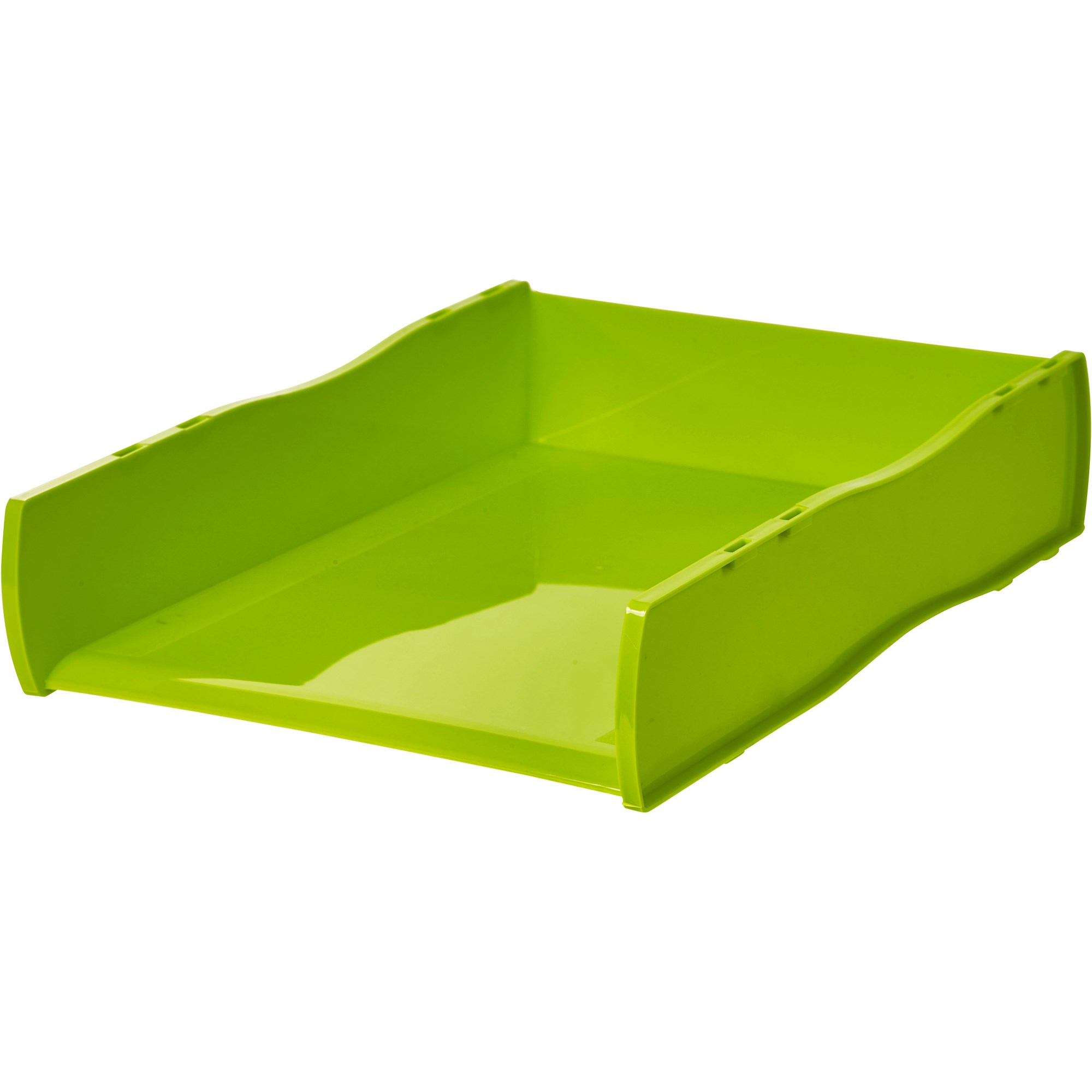 Stylish curved designs. Sturdy and easy to stack. Takes up to foolscap size document. Dimensions: 260W x 355L x 75mmH. Available in a range of colours.