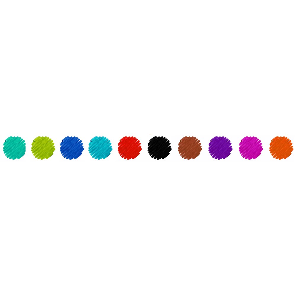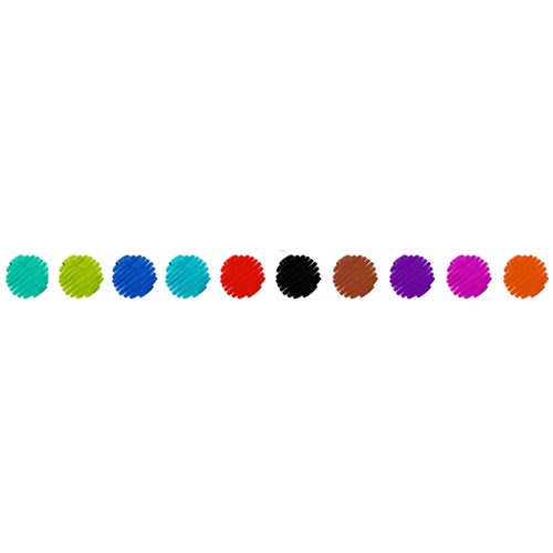• 10 bright, vibrant colours in Red, Pink, Orange, Light Green, Green, Light Blue, Blue, Violet, Brown and Black
