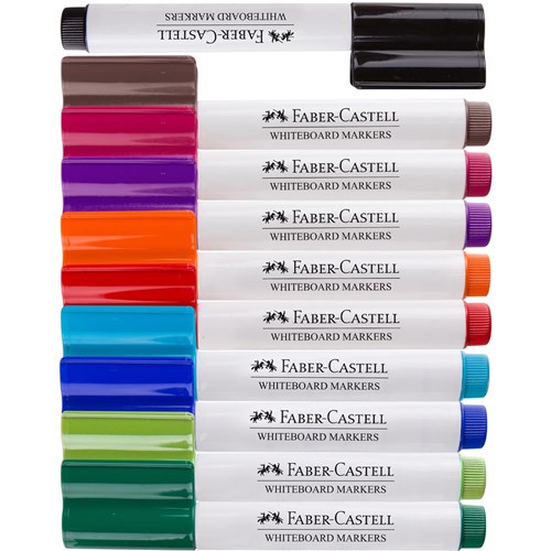 10 bright, vibrant colours in Red, Pink, Orange, Light Green, Green, Light Blue, Blue, Violet, Brown and Black Big 3mm Bullet tips for better line visibility on large boards Ink effortlessly dry-erases for easy, residue-free clean-up Durable felt-nibs create consistent, precise lines Long-lasting ink means fewer marker replacements Whiteboard ink is safe and non-toxic for peac of mind 100 hour cap-off time reduces stress over lost lids Convenient connector caps allow for quick and easy storage