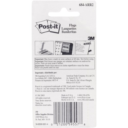 Post-It 684-ARR2 Arrow Flags 12x45mm Bright Blue Green Orange Pink Pack of 100
