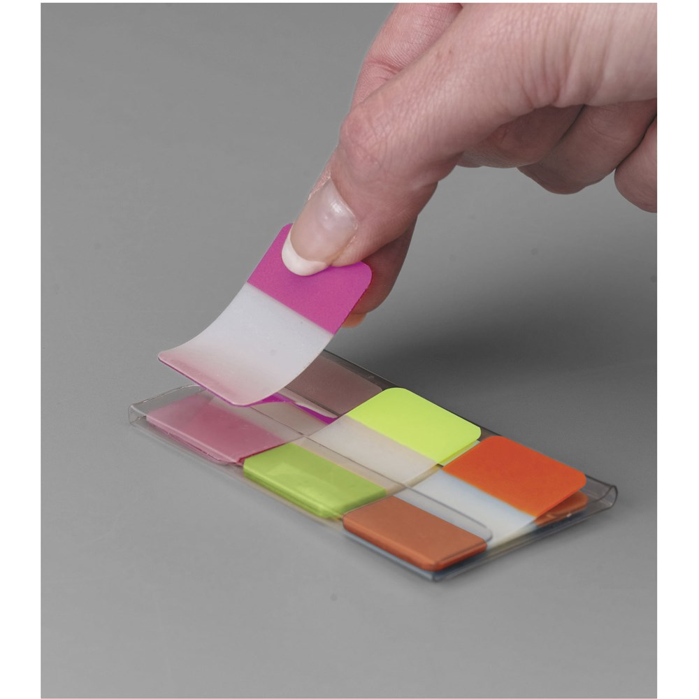 Tougher than normal flags to withstand frequent use. Can be written on. Sticks securely yet removes without damage. Perfect for high paper traffic areas. 22 tabs each colour, 25x38mm (686-RYB, 686-PGO, 686L-GBR & 686L-PGO only). 686-VAD1 Value Pack contains 48x50mm tabs, plus bonus 30x25mm tabs with white coloured strip. 686-VAD2 Value Pack contains 48x50mm tabs, plus bonus 30x25mm tabs.
