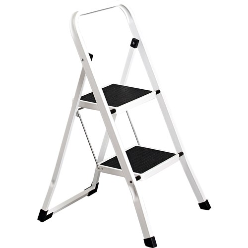 Strong and durable with rubber feet to prevent slipping. 150kg weight capacity. Easy access to high reach places. Conveniently folds away for easy storage. Non-slip mats on each step.