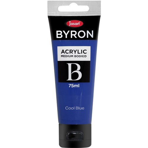 Jasart Byron is a medium bodied acrylic The colours are bright, intense and permanent after they have dried Can be used on most surfaces such as paper, canvas, wood, glass, plastic and more Warm and Cool Primary colours will allow you to have a superior colour mixing Non toxic 75ml tubes available in 30 colours including 4 fluoro colours and 2 metallic colours Each individual tube is foil sealed Also available in 1 Litre bottles in 23 colours including 2 metallic colours.