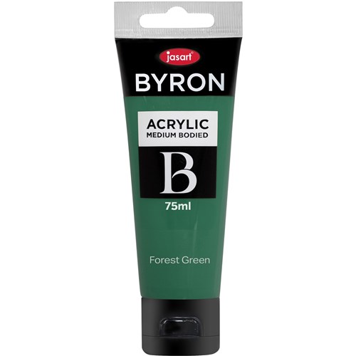 Jasart Byron is a medium bodied acrylic The colours are bright, intense and permanent after they have dried Can be used on most surfaces such as paper, canvas, wood, glass, plastic and more Warm and Cool Primary colours will allow you to have a superior colour mixing Non toxic 75ml tubes available in 30 colours including 4 fluoro colours and 2 metallic colours Each individual tube is foil sealed Also available in 1 Litre bottles in 23 colours including 2 metallic colours.