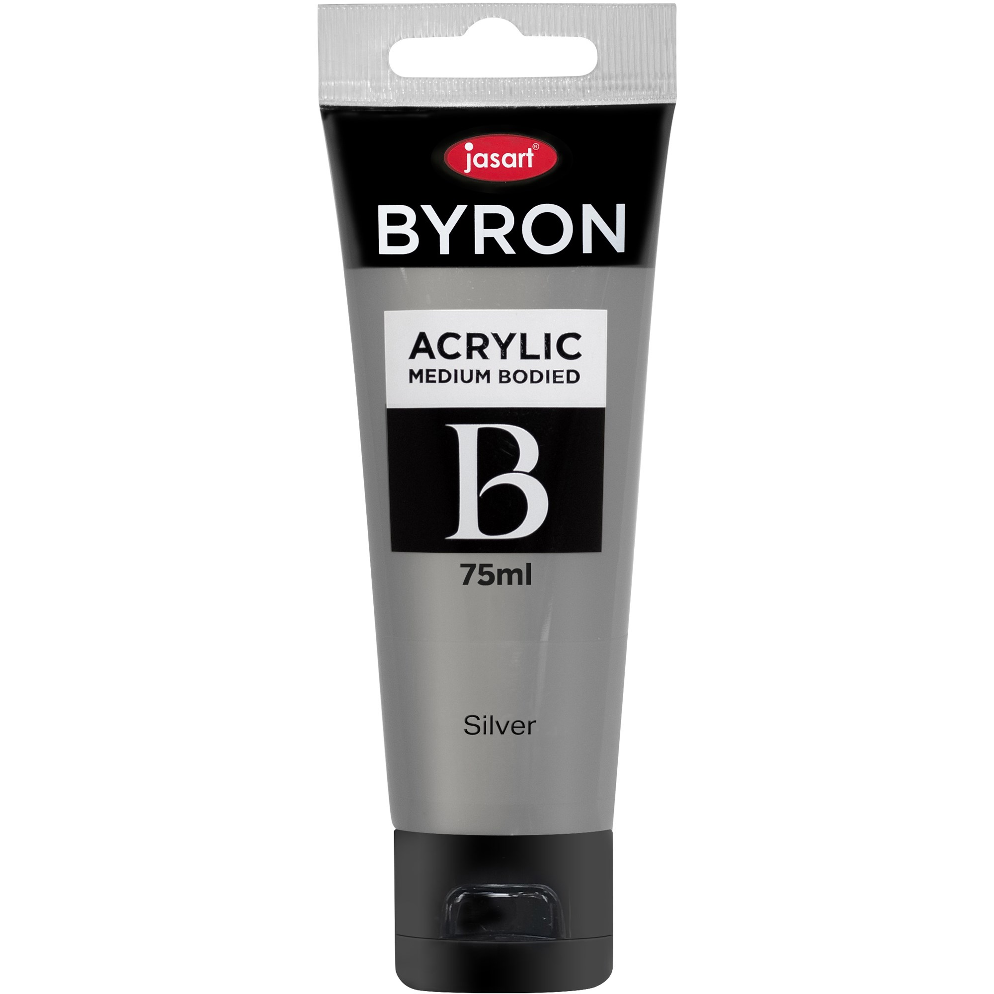 Jasart Byron is a medium bodied acrylic The colours are bright, intense and permanent after they have dried Can be used on most surfaces such as paper, canvas, wood, glass, plastic and more Warm and Cool Primary colours will allow you to have a superior colour mixing Non toxic 75ml tubes available in 30 colours including 4 fluoro colours and 2 metallic colours Each individual tube is foil sealed Also available in 1 Litre bottles in 23 colours including 2 metallic colours.