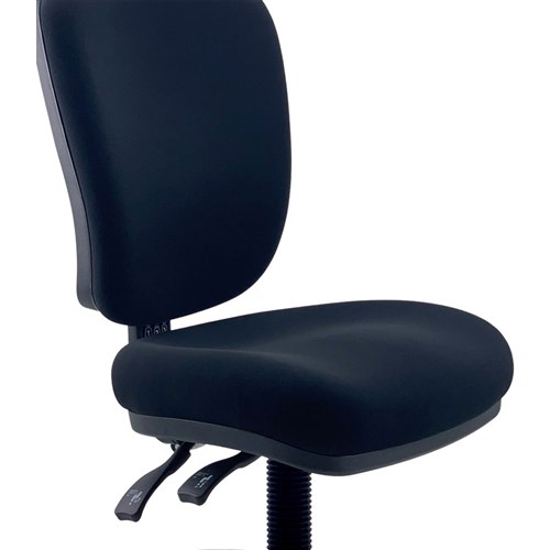 Weight Rating: 160kg Chair Dimension: Seat Width 510mm, Seat Depth 490mm, Back Height: 550mm. Unit Weight: 13Kg. NTR Commercial Grade Fabric Black Back with Moulded Seat Foam for Supreme Comfort. 3 Lever Easy to Use Heavy Duty Ratchet Mechanism. Seat angle, back tilt, and seat height adjustment. 5 Way 640mm Commercial Grade Nylon Base. Heavy Duty Gas Lift Cylinder. Fire Retardant Contoured Moulded Foam. 12 Years Manufacturer's Warranty. Delivery, installation and assembly charges may apply to furniture. Please enquire to confirm.