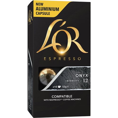 Aluminium capsules which are compatible for use with your Nespresso machine. Intensity 12. Delivers a more intense espresso experience and a richer and smoother foam compared to the existing LOR Espresso plastic capsules. Delivered as 10 boxes of 10.