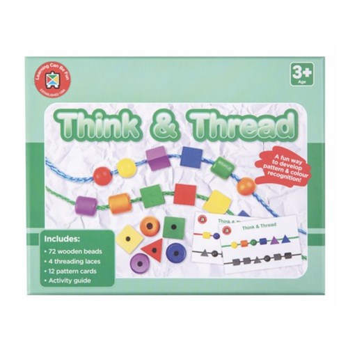 This set can be used at home or school to help introduce early learners to mathematics, sequencing and patterns. It's suitable for early learners aged 5 and up. Designed to enhance problem solving, maths, critical thinking, observation skills, hand-eye coordination and fine motor skills. The kit contains wooden beads of various shapes and colours, coloured threading laces and laminated pattern cards. The patterns are depicted in colour, but also in silhouette, adding a perceptual activity for young children. Includes: 72 wooden beads, 12 pattern cards, 4 threading laces and activity guide.